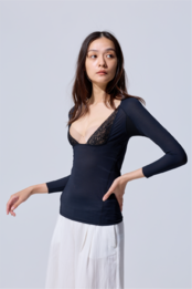 日中の職場、ご自宅で快適に着用いただけるラグランスリーブ使用。肩部分に切り替えがないため、ストレスを感じることなく肩や腕を動かすことができるこだわり設計です。
